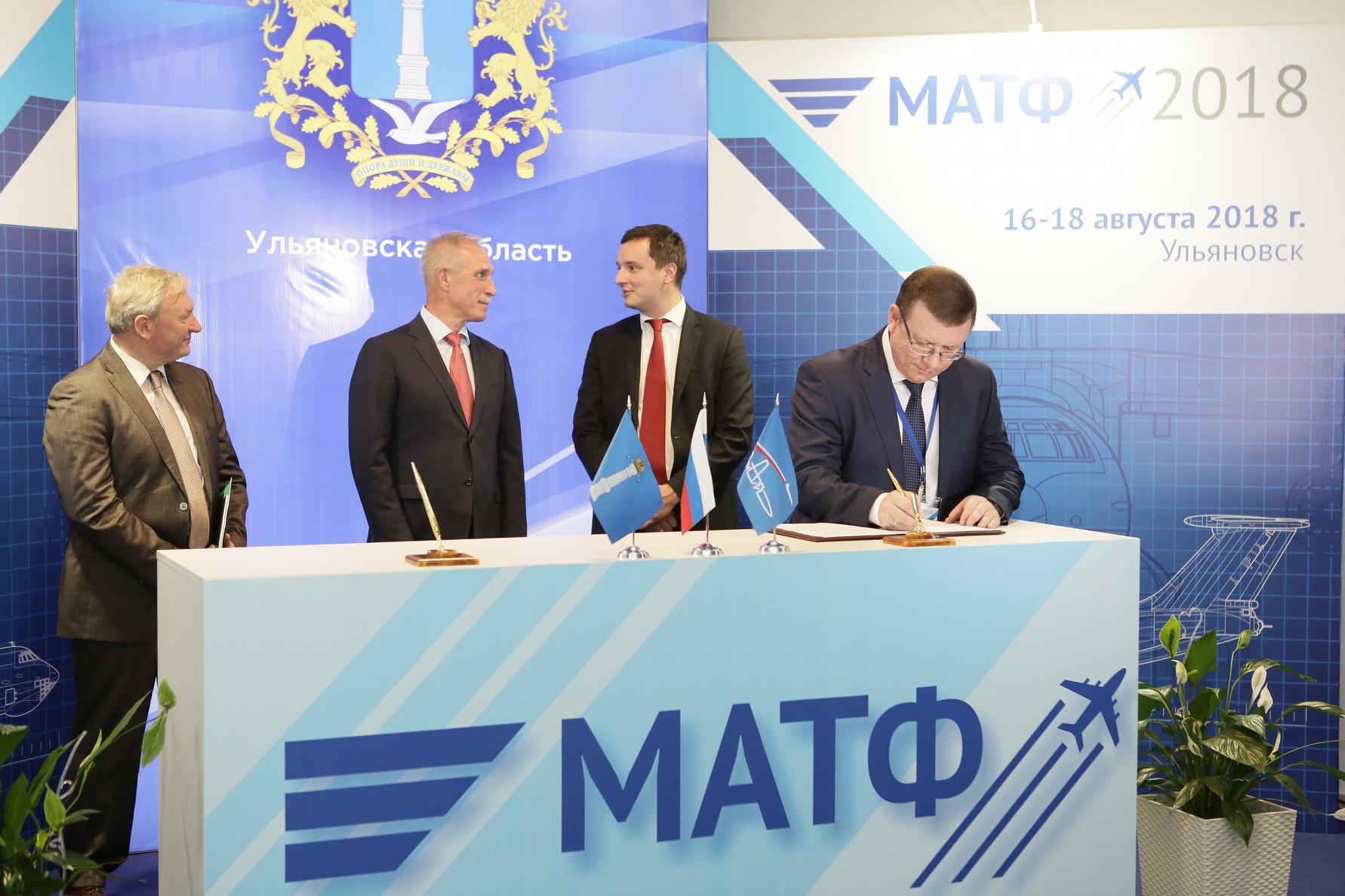 Соглашение о перезапуске кластера на «МАТФе-2018» подписали представители 11 компаний: Авиастар-СП, АэроКомпозит-Ульяновск, Промтех-Ульяновск, Спектр-Авиа, УКБП, конструкторское бюро «Туполев», Центр технического обслуживания и ремонта авиационной техники «Авиасервис», авиакомпания «Волга-Днепр», а также высшие учебные заведения УИ ГА им. Главного маршала авиации Б. П. Бугаева, УлГУ и УлГТУ.