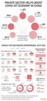 Частный сектор экономики продолжает расти, несмотря на проблемы, вызванные пандемией COVID-19. С января 2020 года по август 2022 года число китайских частных предприятий увеличилось с 35,2 миллиона до 47,0 миллионов. В 2021 году на их долю приходилось 92,1% всех предприятий.